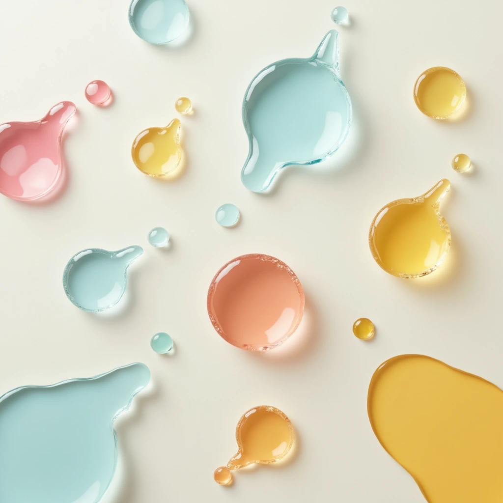 Кремовая текстура с голубыми сферами с витамином Е. При контакте с водой средство образует обильную густую пену.